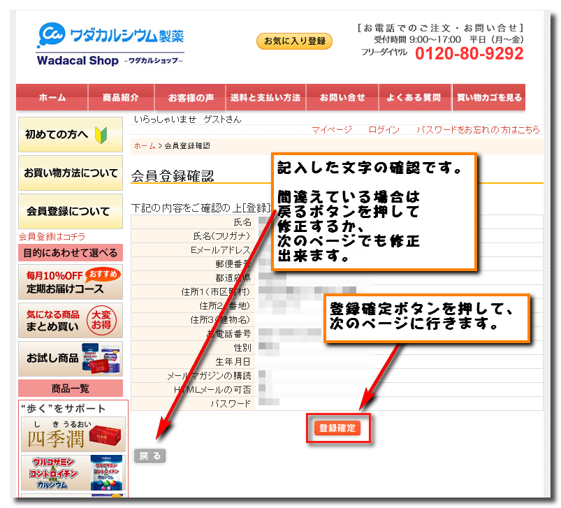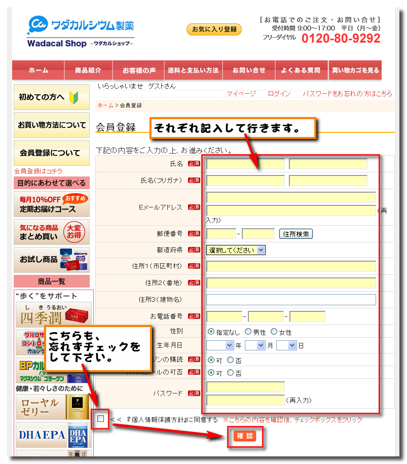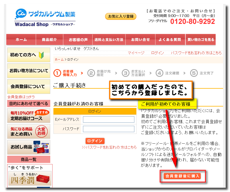 ワダカルシウム社のサイトも購入ページがとても奇麗でした。