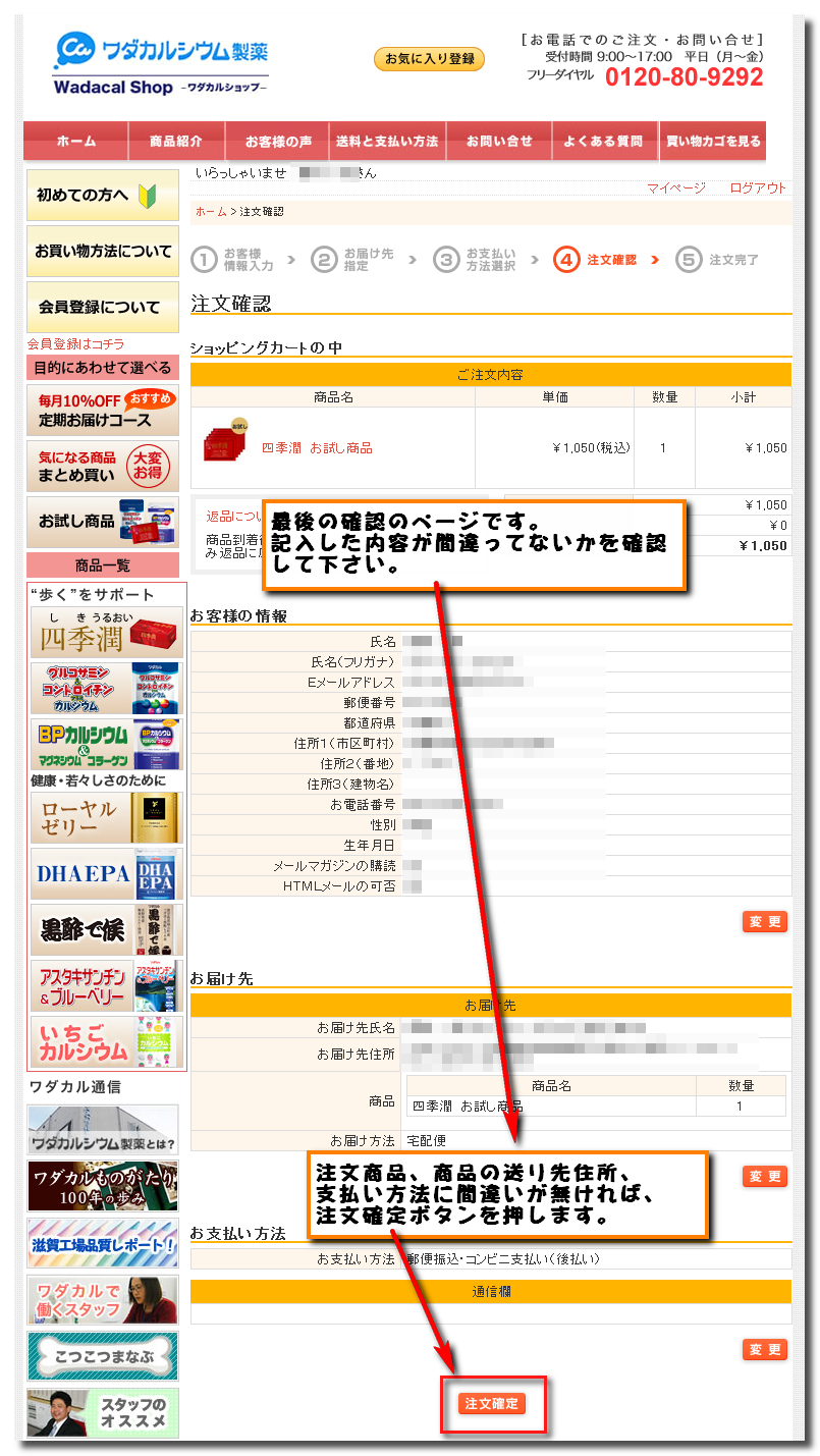 ワダカルシウム 四季潤 の購入方法を画像付きで解説します。